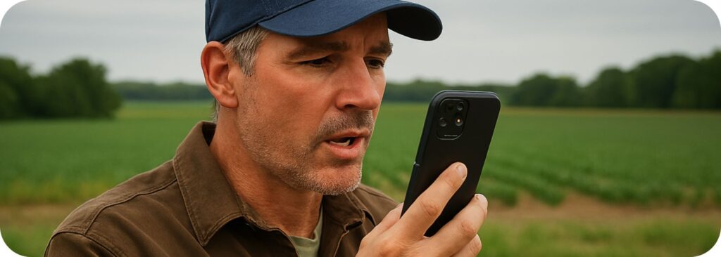 No campo, equipes agrícolas e pecuárias relatam condições, coordenam tarefas e resolvem imprevistos em tempo real, sem depender de rádios analógicos ou sinal instável.