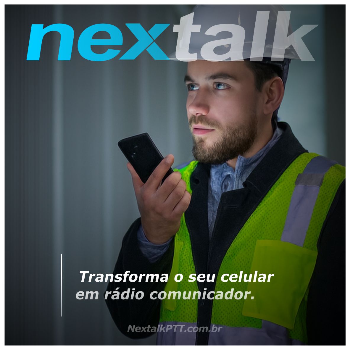 - Escalabilidade: pode ser usado por uma pessoa ou por grandes equipesO Nextalk PTT é um aplicativo de comunicação instantânea que transforma celulares, tablets e computadores em rádios digitais corporativos. Com a tecnologia Push-to-Talk, basta um toque para falar em tempo real, sem precisar discar ou aguardar conexão. Compatível com redes Wi-Fi, 3G, 4G e 5G, ele garante agilidade, segurança e eficiência na troca de mensagens de voz ou texto, sendo ideal para empresas de logística, transporte, segurança, saúde e também para profissionais autônomos.
